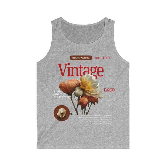 Vintage Floral Quote Men's Softstyle Tank Top - "Bloom Where You Are Planted"