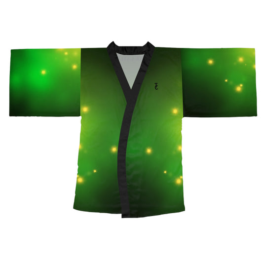 Enchanted Glow Long Sleeve Kimono Robe | Cozy Loungewear, Festival Outfit, Spa Day Gift, Green AOP Design, Relaxation Essential