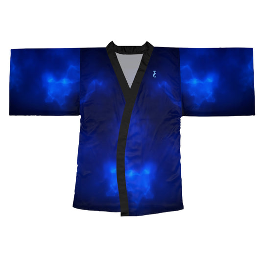 Mystical Blue Long Sleeve Kimono Robe, Cozy Loungewear, Spa Gift, Relaxation Attire, Boho Style, Yoga Cover-Up