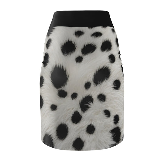 Cruella style Women's Pencil Skirt, AOP Dalmatian Print, Chic Office Wear, Trendy Summer Outfit, Perfect Gift for Fashion Lovers