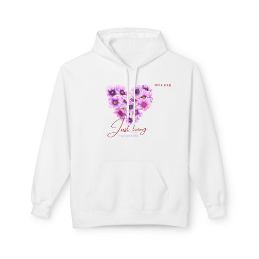 Just Living Floral Heart Hoodie - Inspirational Midweight Fleece Sweatshirt