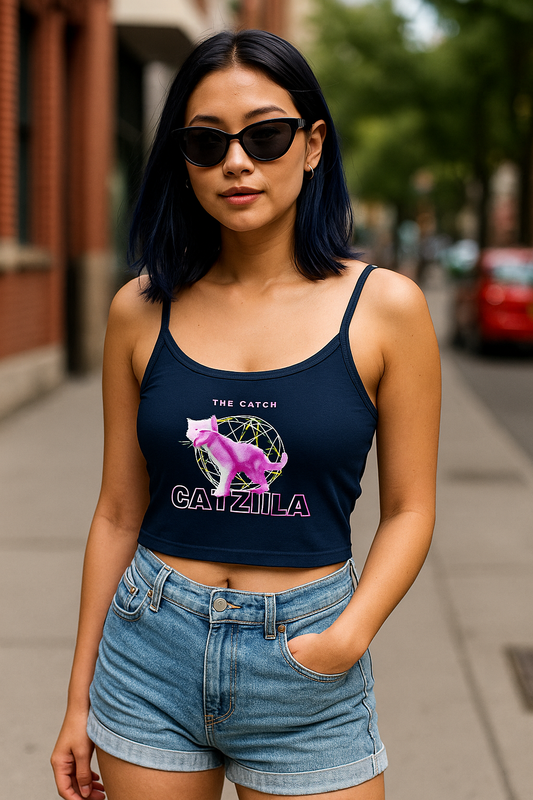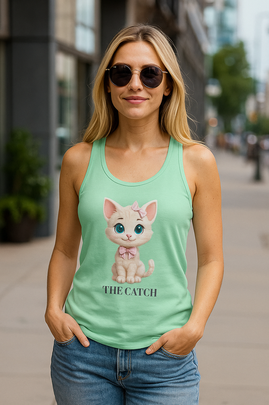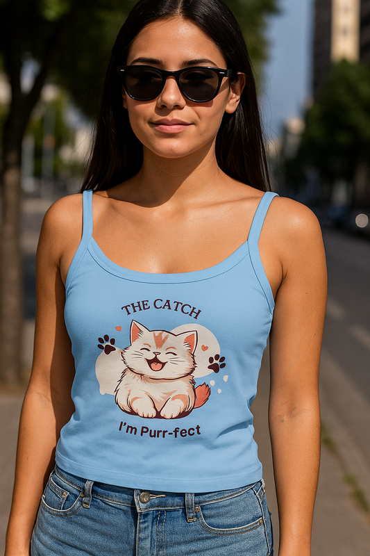 Cute Cat Themed Women's Spaghetti Strap Tank Top, Funny Pet Tee