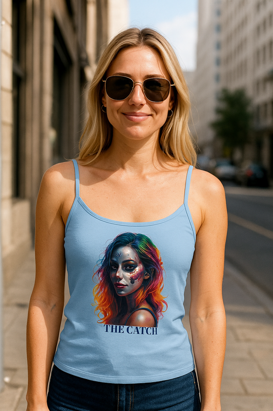 Colorful Cat Graphic Women's Tank Top, Summer Tops, Cute Cat Apparel, Gifts for Cat Lovers, Trendy Spaghetti Strap Shirt